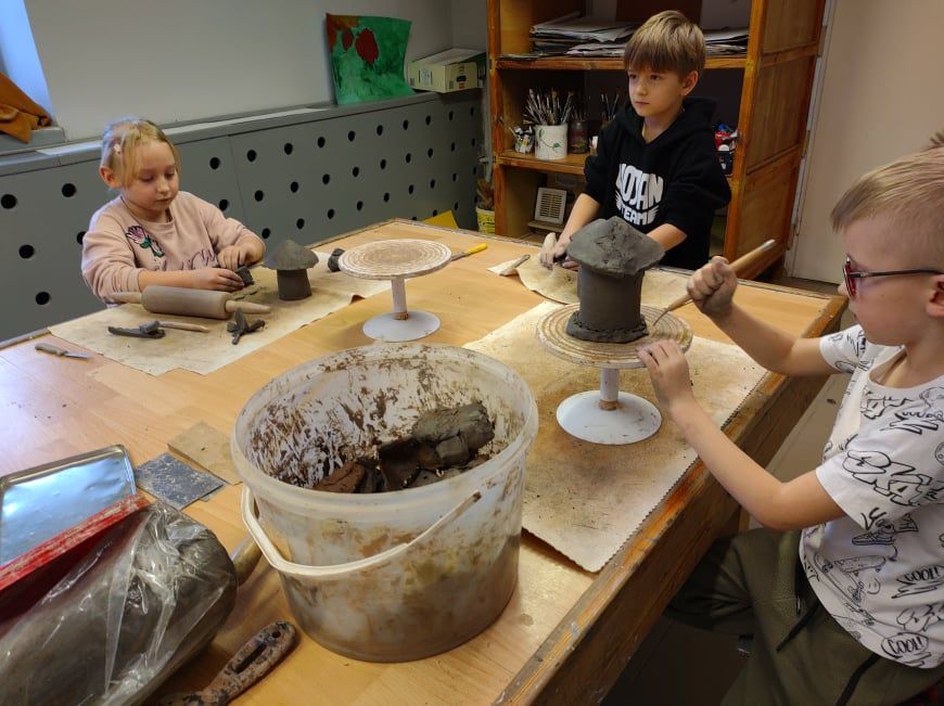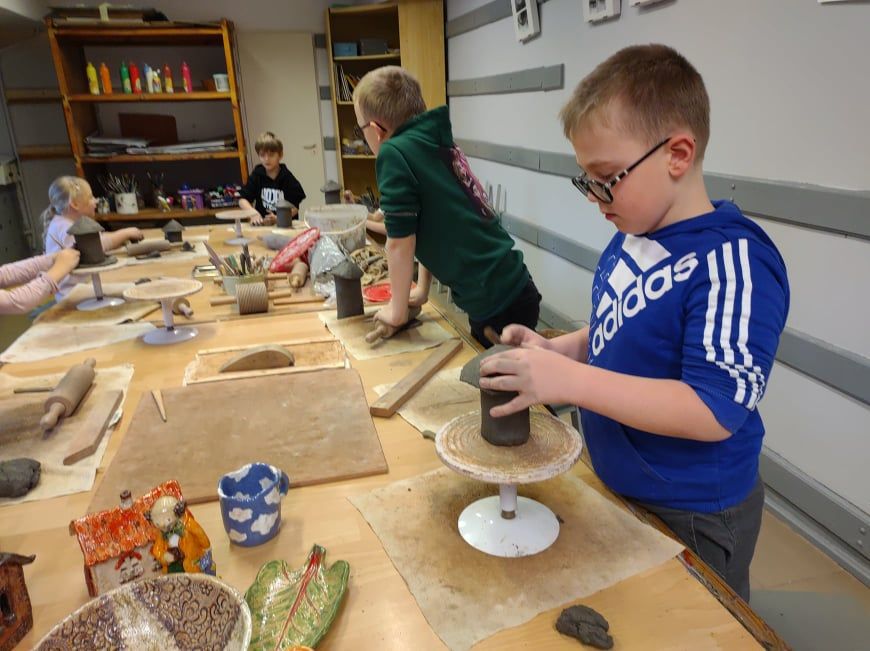 Uczestnicy zajęć ceramicznych ulepili swoje pierwsze domki pod czujnym okiem instruktora Marcina Adametza, drudzy trzymali po raz pierwszy smyczek z niewielką pomocą instruktor Magdaleny Sułkowskiej, a pozostali śpiewali swoje ulubione piosenki u instruktor Justyny Sosnowskiej oraz w Dziecięcym Zespole Pieśni i Tańca instruktorów Barbary Źróbek i Andrzeja Lubczyńskiego. We wtorek kolejna przygoda ze sztuką, a o godz. 10:00 seans filmowy „Mój przyjaciel wampir”. Zapraszamy serdecznie!