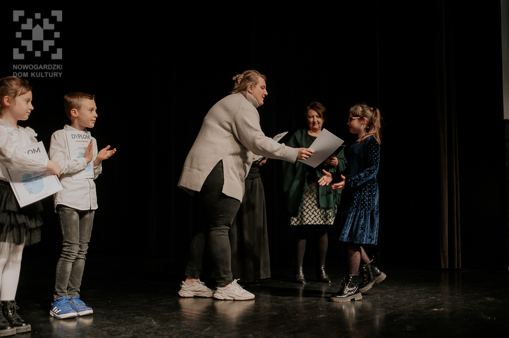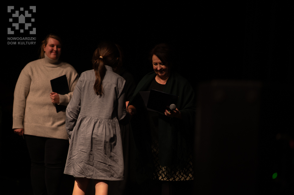 Nie zabrakło także wyjątkowego akcentu – w tym roku otrzymaliśmy zgłoszenie w kategorii poezja śpiewana, co dodało konkursowi jeszcze więcej różnorodności. Każdy uczestnik dał z siebie wszystko, a jury w składzie: Elżbieta Tarczykowska, Aleksandra Przybyła oraz Dyrektor Nowogardzkiego Domu Kultury Aneta Drążewska, miało niełatwe zadanie, by wybrać tych, którzy będą reprezentować naszą gminę (i powiat!) w kolejnym etapie.
