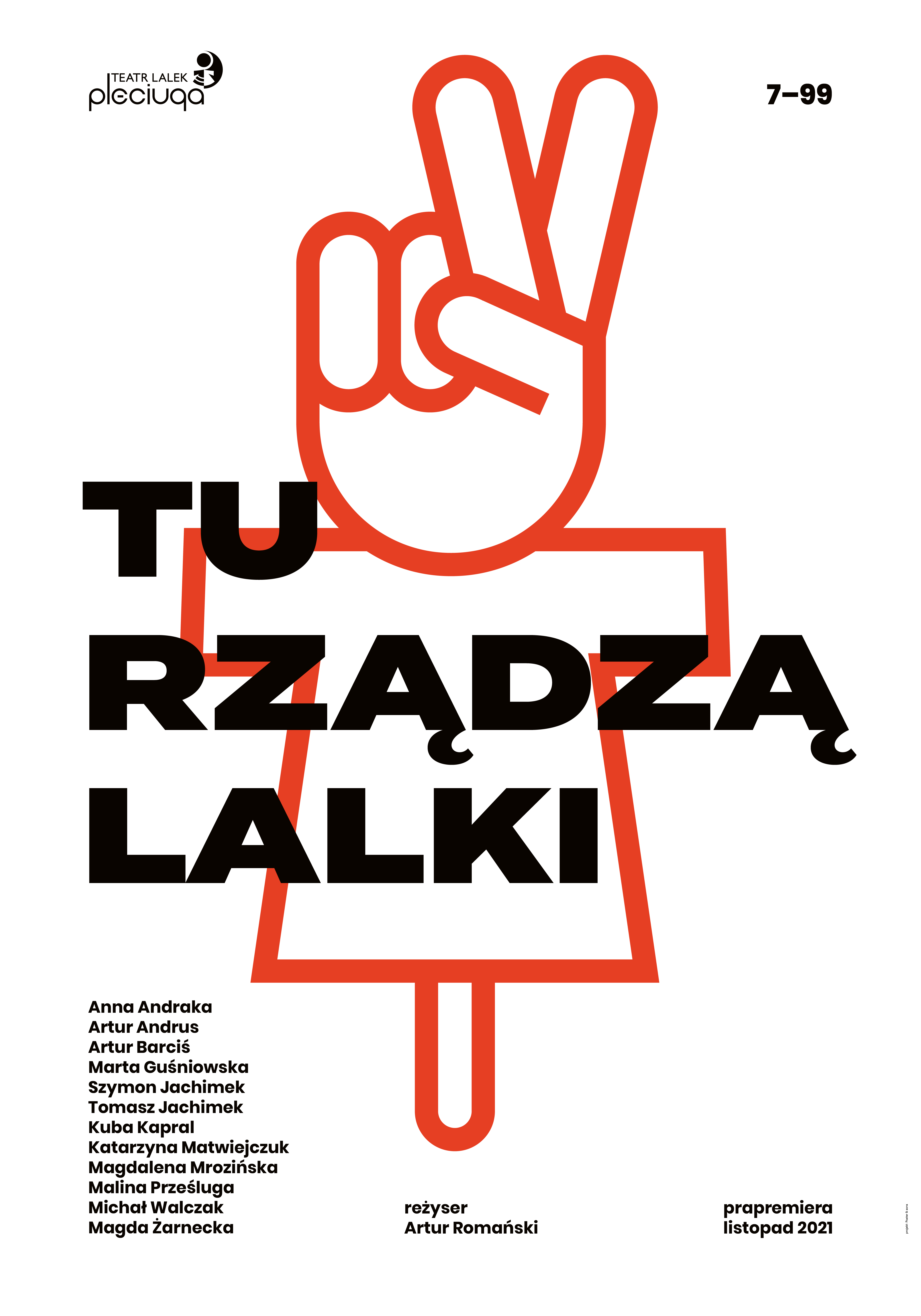 Koniec z pociąganiem za sznurki.  Koniec z zimnymi dłońmi, nieczułymi lalkarzami i ludźmi, którzy mówią na nich „kukiełki”. Kukiełki z „teatrzyku”. Po tylu latach podkulania ogona i wykonywania bez mrugnięcia okiem wszystkich aktorskich poleceń, lalki poszły po rozum do głowy… A może jednak nie? W końcu czy uwięzienie aktorów w garderobach i bezprecedensowa zamiana ról na linii lalka-człowiek jest aktem odwagi czy objawem postradania zmysłów?Spektakl „Tu rządzą lalki” to pełen absurdalnego humoru projekt, w którym znalazło się kilkanaście piosenek napisanych przez najlepszych polskich tekściarzy i dramaturgów.  Muzyka na żywo, zaskakująca oprawa wizualna i bogata choreografia tworzą opowieść o potrzebie bycia zauważonym i ważnym. Ale też o bezgranicznej przyjaźni, która czasami w kryzysie i starciu potrafi wybrzmieć najpiękniej.