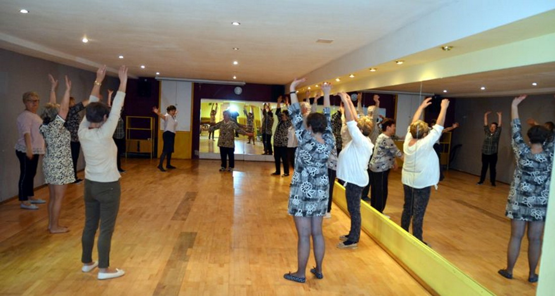 Śmiech, dobra zabawa przy ćwiczeniach dykcyjnych, a przy okazji nasza koleżanka stwierdziła, że dzięki naszym spotkaniom „zmartwychwstała” i uwierzyła, że może zagrać wszystko. 2 marca po sesji fotograficznej zafundowanej nam przez pana Franciszka Karolewskiego udaliśmy się do… sali baletowej. Nie, nie – żadne piruety ani arabeski czy pas de deux, ale ostra gimnastyka, którą poprowadziła Wanda Obrębska. Tak „rozluźnieni” przeszliśmy do poważnego tematu. Recytacja! Życzliwe uwagi, podpowiedzi naszej reżyser Józefy Szukalskiej pozwalają nam szlifować warsztat recytatora, dodają pewności siebie.Kolejna sobota, 16 marca 2019 i nasze spotkanie w sali baletowej. Tym razem pan Franciszek Karolewski „przyłapał” nas  w przedziwnych pozycjach. Czegóż to nie zrobi aktor – amator dla poprawienia kondycji. Nawet da się sfotografować w nieoczywistych pozach. Ale fotograf uwiecznił także chwile pełne powagi. To były nasze próby recytacji. No i mamy piękne zdjęcie zbiorowe, a na nim także pani dyrektor Domu Kultury, która obserwowała nasze „aktorskie” wysiłki i wyraziła bardzo pochlebna opinię. W środę, 20 marca 2019 r., w przeddzień kalendarzowej wiosny, czekał na nas w naszej sali  prezent: nowa, jasna pachnąca meblościanka. Możemy teraz zostawiać w zamykanych szafkach potrzebne nam materiały. A tych przybywa z dnia na dzień.Ćwiczenia 2